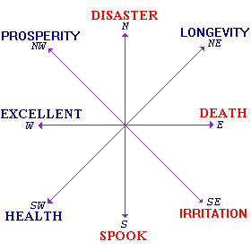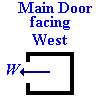 The main door faces West and is regarded as the orientation of the house as a whole. The house is `divided' into eight sectors.